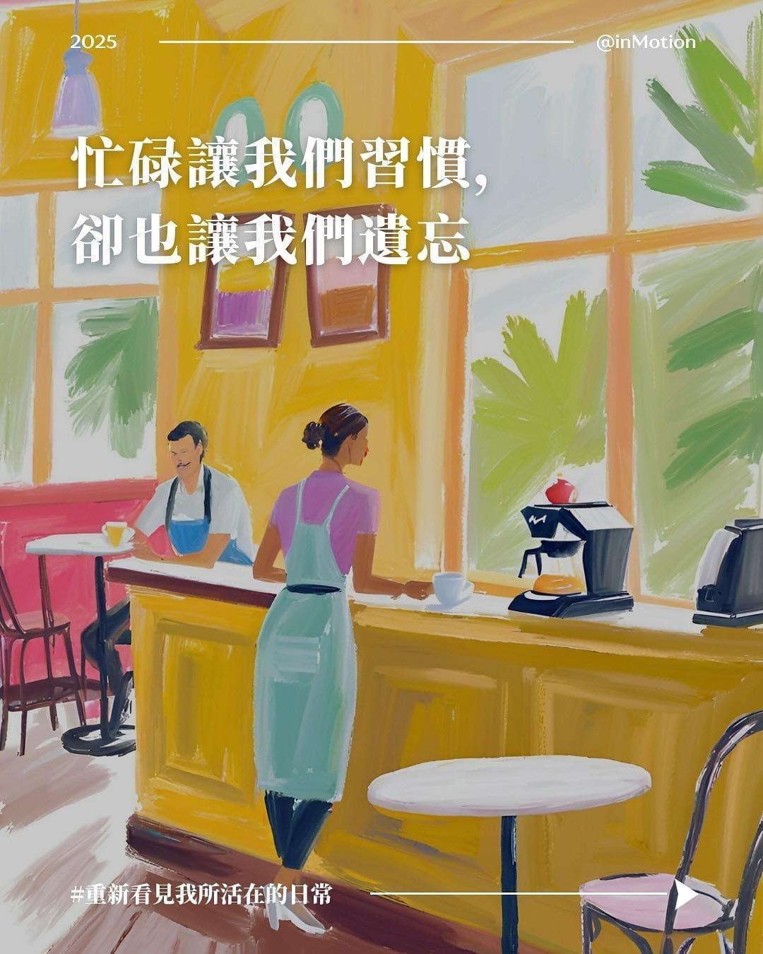 有時候,我們總是在忙碌裡把日常變得模糊。每天走過相同的街道,喝著相同的咖啡,習慣了一切如常,卻很少真的停下來,感受生活的溫度。