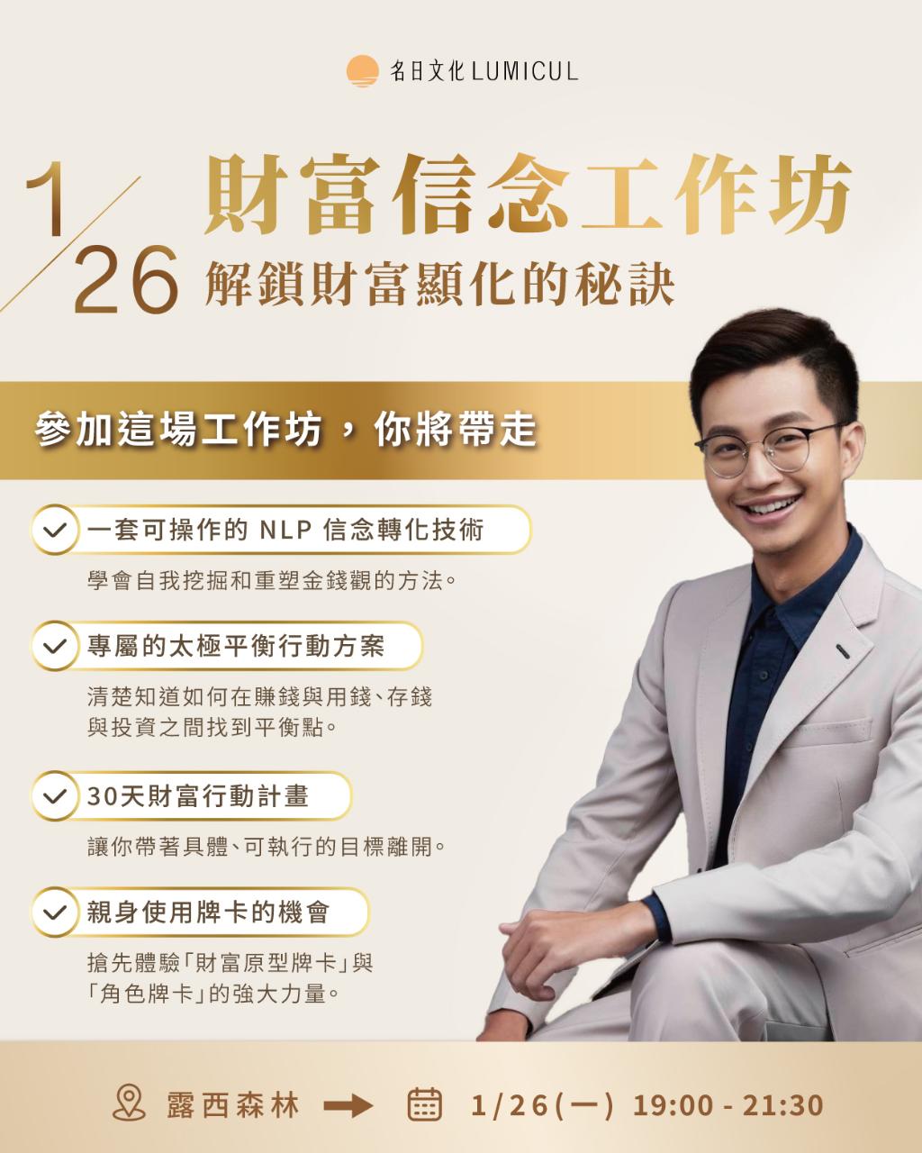 1/26 財富信念工作坊:解鎖財富顯化的秘訣