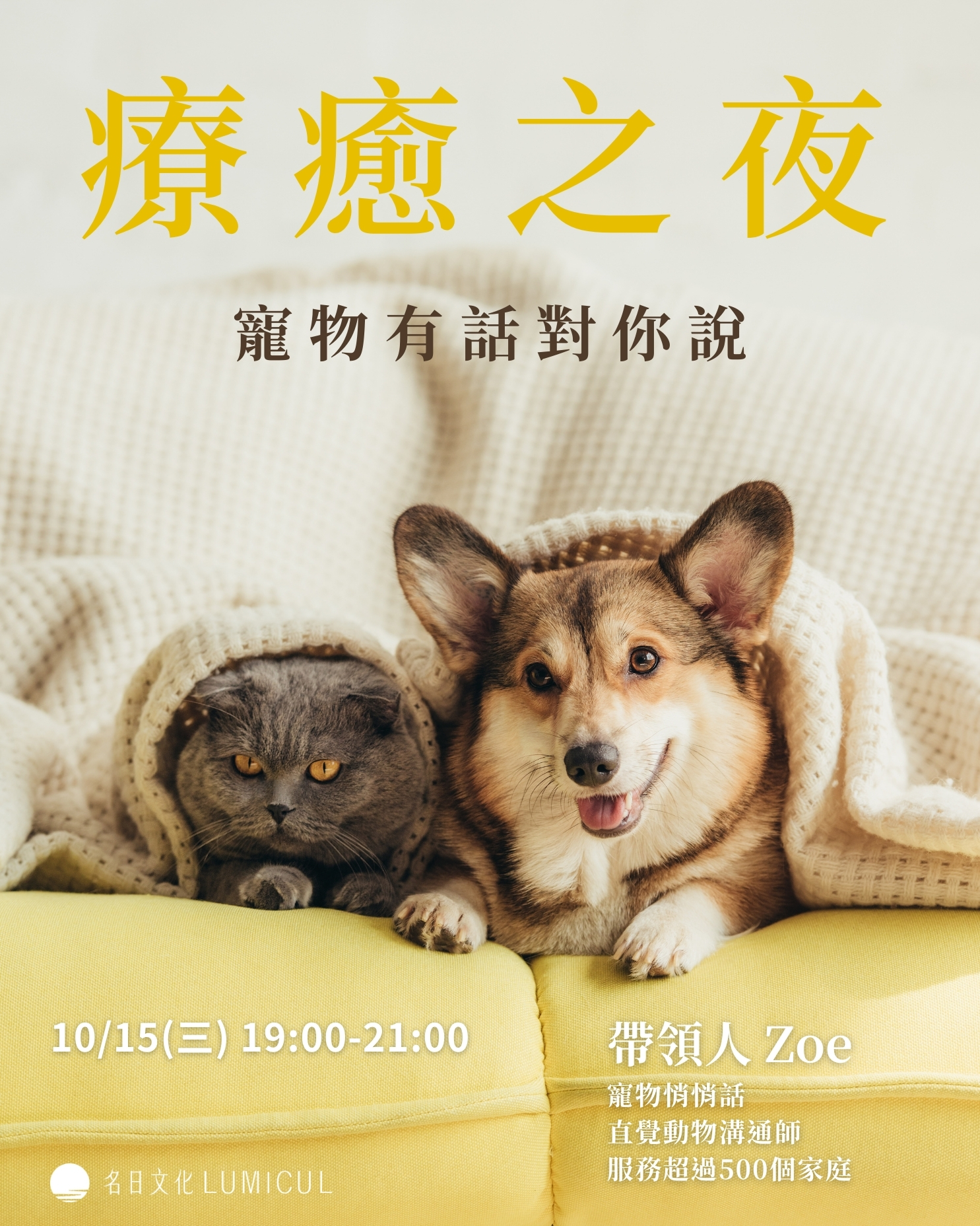 2023年,Zoe成立了個人品牌 「寵物悄悄話」,至今服務超過500個家庭,遍及台灣、歐美與香港華人。