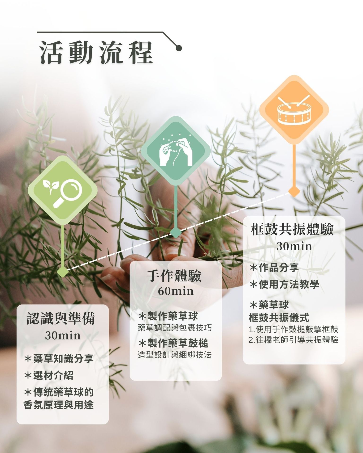 五感手作:以聞香揉捏的方式感受藥草,並親手製作天然藥草球與鼓槌