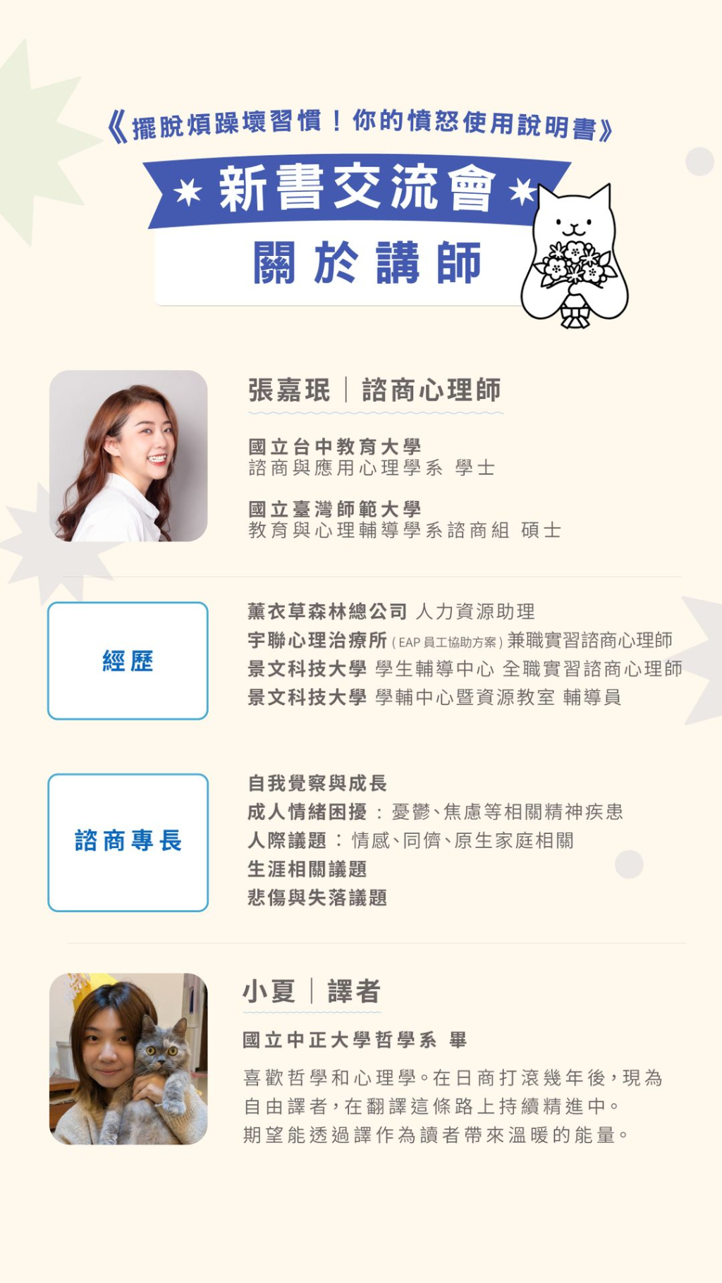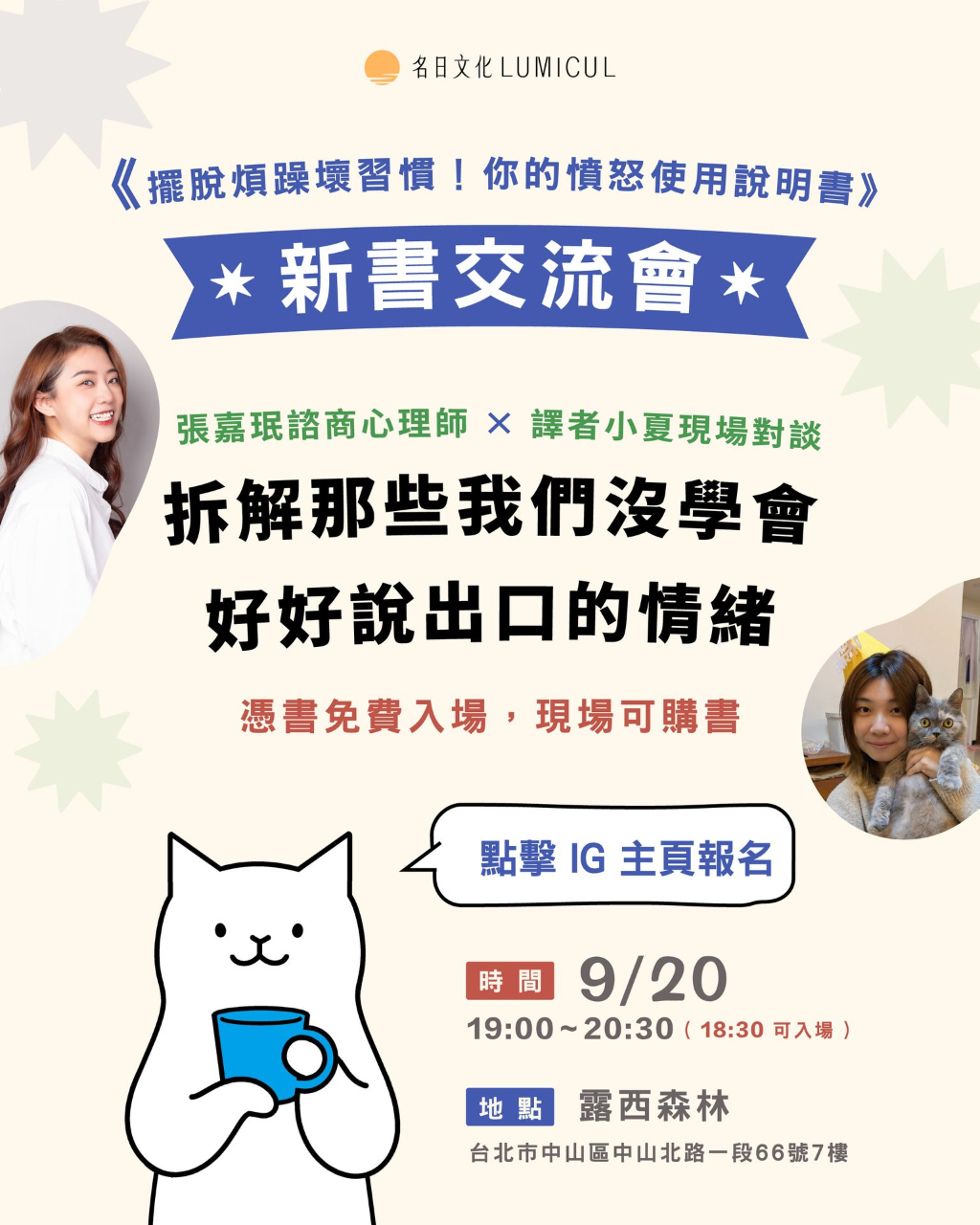 9/20 台北場 - 新書交流會《擺脫煩躁壞習慣!你的憤怒使用說明書》