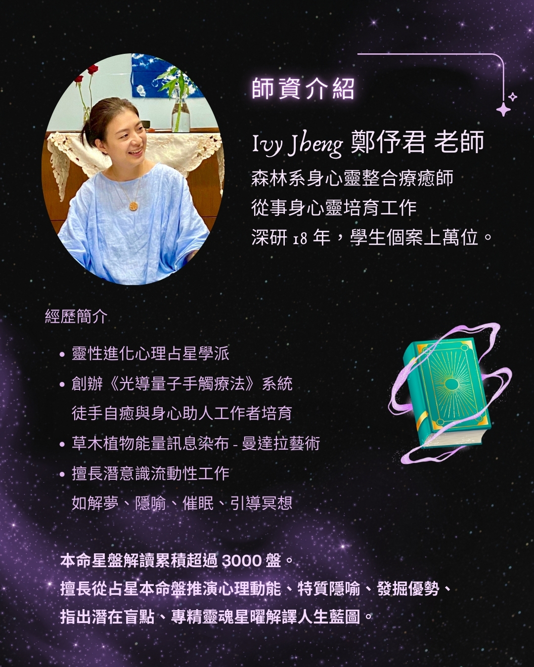 擅長從占星本命盤推演心理動能、特質隱喻、發掘優勢、